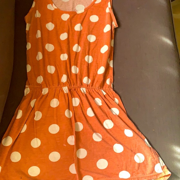 Polkadotted dress it’s a soft orange colour with white polkadots it’s light for the summer