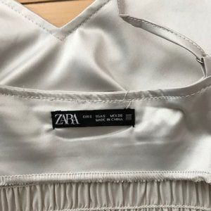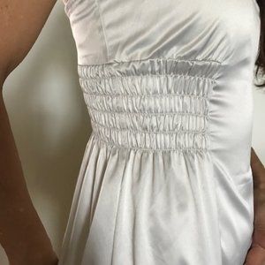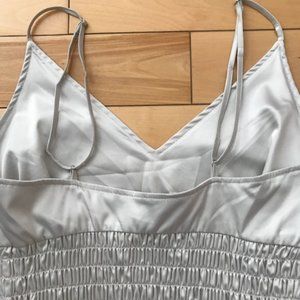 Strappy dress with elastic on waist side and back. It has adjustable straps. Mid calf length.