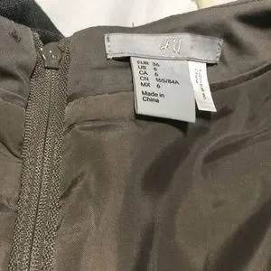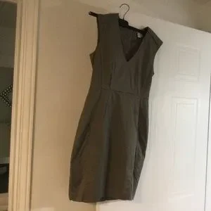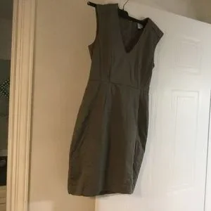 Green / grey form fitting dress with nice tapered lines /detail. Excellent used condition.