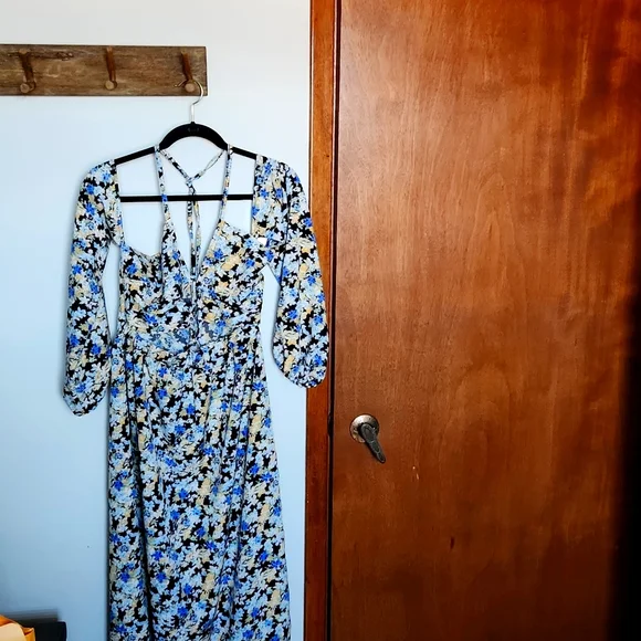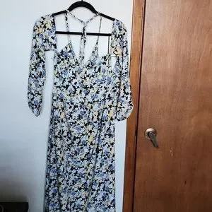 long sleeved dress. very light weight for summer. high slit and scandalous chest area with criss cross. not suggested for women with larger breasts.