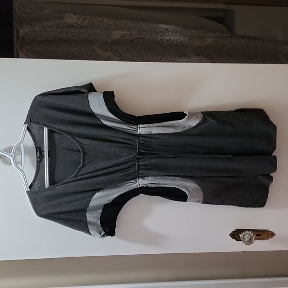 Soft and comfy dress. POCKETS!! Scoop neck, drawstring waist. 32 from shoulder to hem. waist stretches out to 21 inches flat.