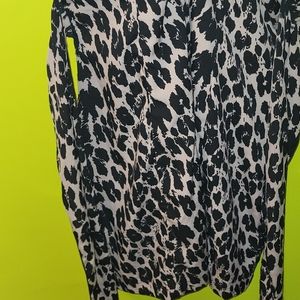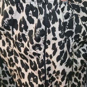 knee length leopard print with tie at waist. pockets on both sides. size is large, tags were removed