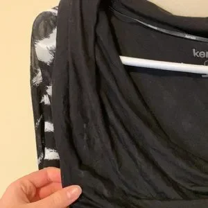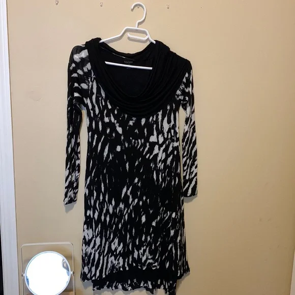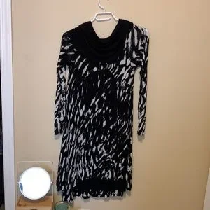 Black and white patterned stretchy dress with black collar