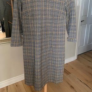 Office dress. Size 40. Mock neck and mid-length sleeves. Back zip. Excellent condition. Polyester, viscose, elasthanne. Black, cream and mustard plaid.