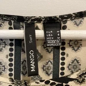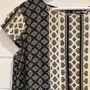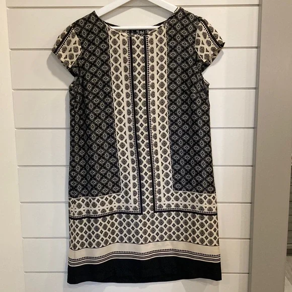 Size 6 dress from Mango. Cap sleeves. Ivory and black pattern.