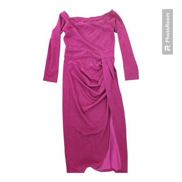 Brand new Ollie and Mac pink sparkly dress midi with slit and ruched detail