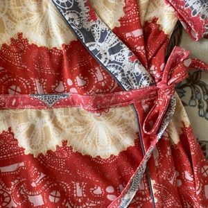 BCBGMAXAZRIA red curry dress, wrap around tie, v neck above knee. Worn once