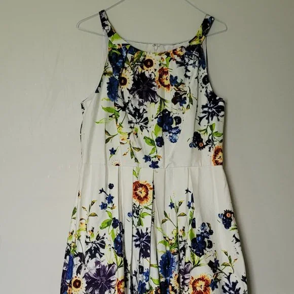Beautiful floral dress. Never worn. Brand new with tags. In pristine condition. Rest slightly above the knee. Melanie Lyne