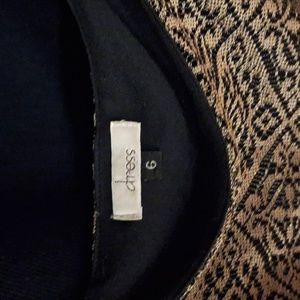 Gold, tan, colored just above knee dress.Beautiful for parties or evening out .The material is not stretchy. it's made from 65%Nylon 35%polyester lining 100%Nylon.