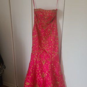 Size medium. Comes with shawl and straps. Needs to dry clean but in perfect condition. Worn once