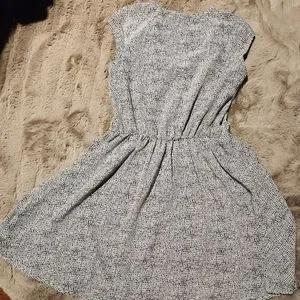 H&M dress is black & white, sleeveless, zipper detail on bodice