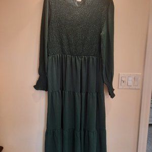 Dark green tiered dress, size L, 48 inches long from back of neck. Never worn, ordered wrong size
