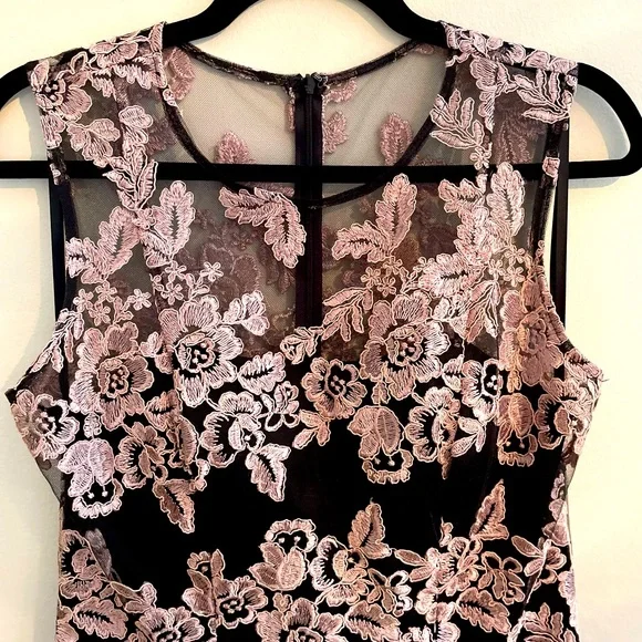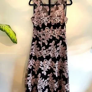 Gorgeous dress, only worn once for a wedding. Black with pink embroidery. Like a farytale!