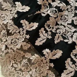 Magnifique robe noire avec des broderies roses. La coupe est parfaite, classique et distinguée.