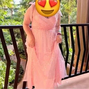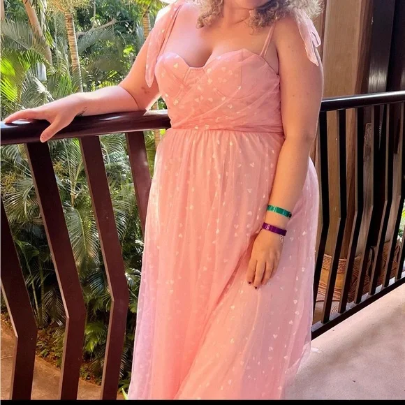 Silver hearts with a pink background. Only worn twice. Has ties on the shoulders to help make it as tight or as loose as you would like. Also has a zipper. Is an xl but fits like a large