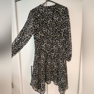 A beautiful dress with an asymmetrical skirt. A classy, elegant look for a night out. Barely worn, like new.