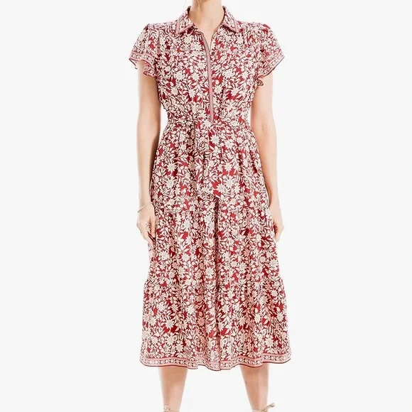 Max Studio midi dress with flutter sleeve and tie waist
