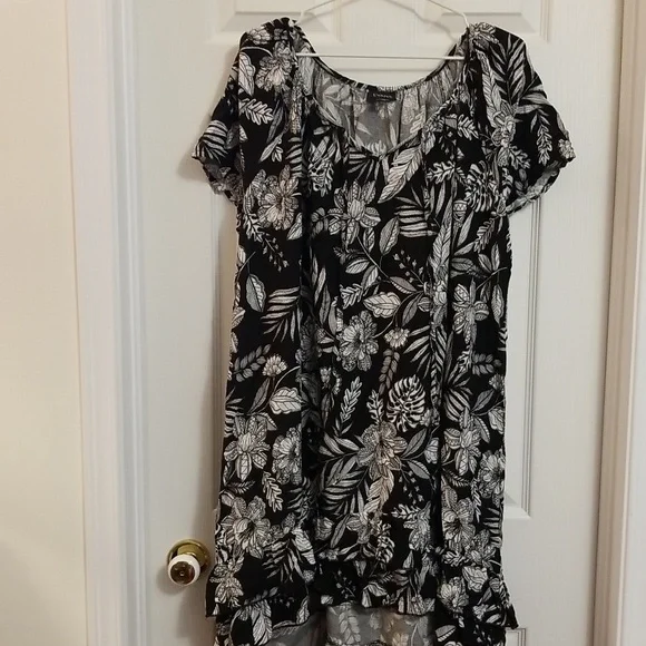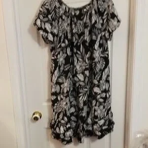 evans ruffle detail on bottom light chest flat 24" length 31" in front hi low hits above knee in front