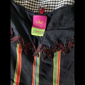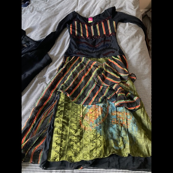 Evening dress, bohemian style, Worn 2x, like new. Black with streaks of Colors.
