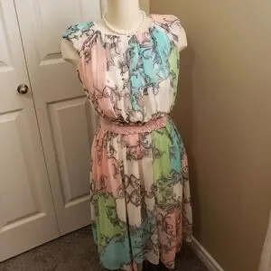Elegant multi-colored pastel sundress perfect for spring, wedding or tea party. Add 5 dollars for belt