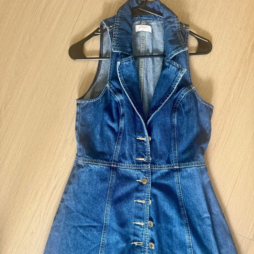 This is a denim meshki dress. In Great condition. It has been worn only once