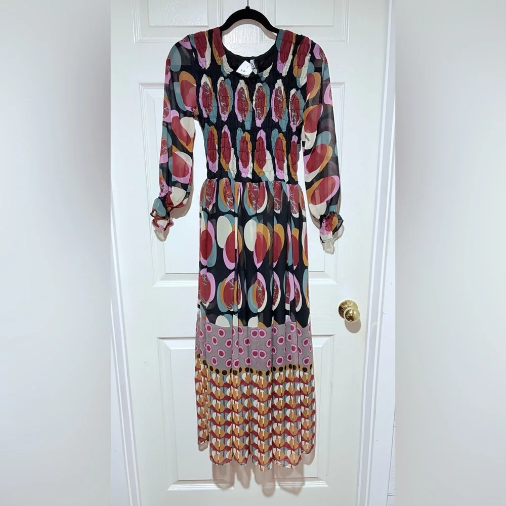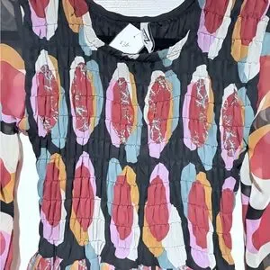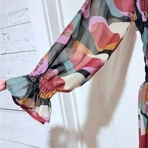 Maxi dress lined to midi. Flowy with an elastic top part. Sheer sleeves