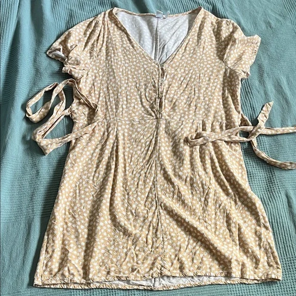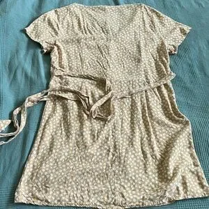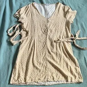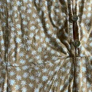 VGUC twik dress. Buttons on the front down to the waistband. Seam at the waist is starting to come loose/material is pulling apart as seen in photo. Hits approximately mid thigh.