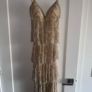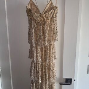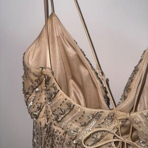 Details: All-over beading, crisscross back