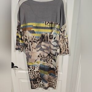Soft, stretchy, ladies midi dress. The material is fabulous! The creative fabric and dolman-like sleeves makes this dress fun, sporty and comfortable. NWT.