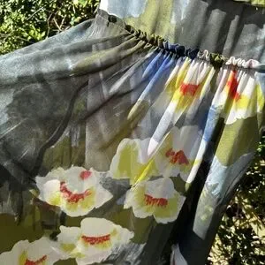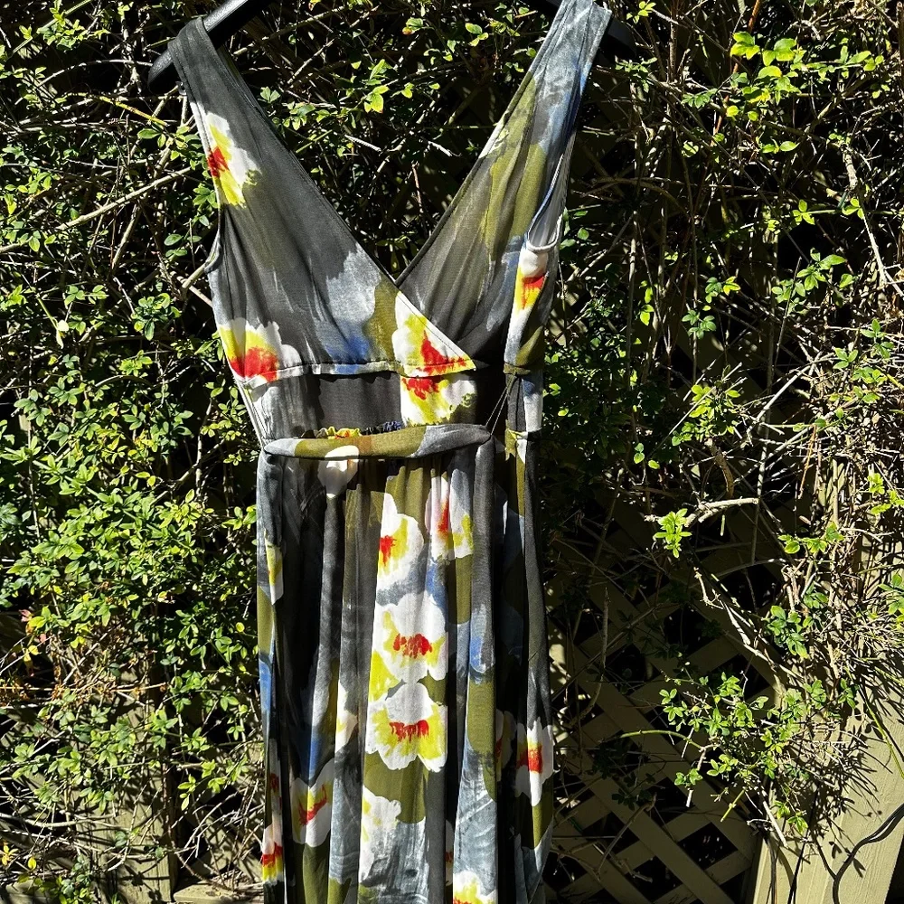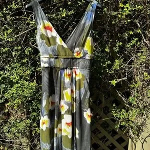 This is a beautiful dress the fabrication is extremely soft empire cut under the bust and flows away from the body gorgeous print.