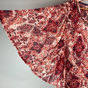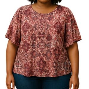 Dress Barn Semi Sheer Printed Top Blouse Flutter Sleeve Red Pink Navy White 2X