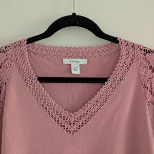 Pink top with knit details. Good quality and nicely made. In perfect condition, no rips or stains.