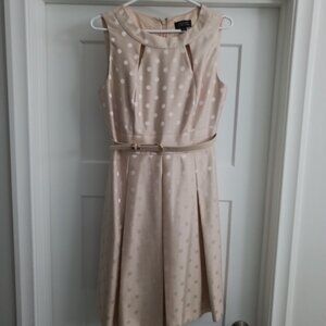 Tahari beautiful summer dress size 8, beige with cream spots