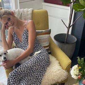 Almost brand new (worn once). Midi dress from Dress Forum. Built from a lightweight floral fabric with a deep v-neckline and adjustable spaghetti straps at the triangle cups. Finished with a breezy skirt and smocked banding at the back for a comfortable fit. Content + Care
