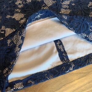 Dress, Guess, all stretch lace, navy over nude, sz 6, knee length, EUC