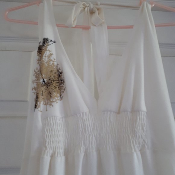 Dress - Halter - Ivory with Black & Gold Floral Highlights - Size M