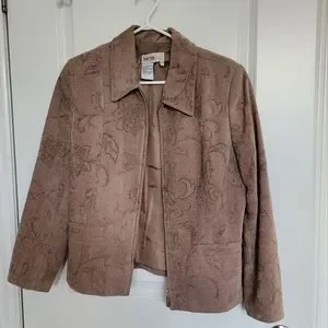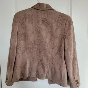 Fully lined dress jacket with decorative pattern. Light brown. Zipper front. In excellent used condition.