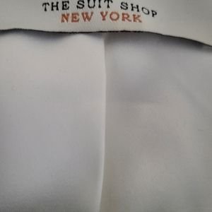 Large white dress jacket made by Dex. Fully lined. Made of polyester and lining is polyester/spandex. Full sleeve length.