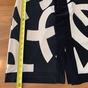 From Joseph Ribkoff, a knock out, easy wear sheath dress in strong graphic print, black and white. Easy to wear light weight jersey knit with stretch, fully lined. Size 12, sleeveless, knee length, pull on. Open vents at knee front and back for a sexy peek of leg. Solid black trim at neck, down front and hem line. In excellent used condition with no wear, damage or stains detected. A perfectly chic dress for those "in between" events you never know what to wear; shower, small wedding, business meeting. Go casual with a simple cardigan and flats, dress it up with sexy little jacket and strappy heel, or get edgy with high boot, hobo bags and poncho! So many looks, so little time! Grab those finishing touches from Our Closet (some suggestions shown all listed and priced separately), make a bundle, save a bundle. Fun and Fresh from Lemon Squeezy Shop🍋