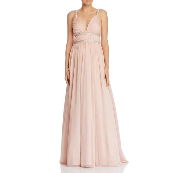 Dress Mattox Blush Deep V Ball Gown Embellished Silver Prom Bridesmaids