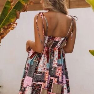 Dress Patchwork Bohemian Mini Dress Floral Adjustable spaghetti straps Size M