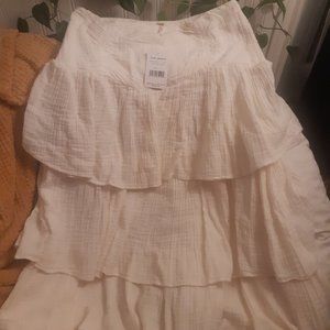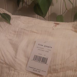 This is a beautiful Free People's dress, it's kind of white/beige, boho, simple and it's not transparent. It's a MEDIUM size but it's could be more LARGE // C'est une jolie robe sans manches de la marque Free people, elle est de couleur blanche/beige, très hippie. La taille est M mais ça fait grande.
