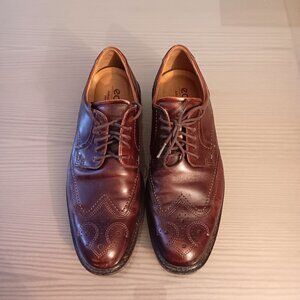 Chaussures habillées Ecco comfort shank technology / extra width, style derby à bout golf de couleur cognac, grandeur 42. En très bon état.