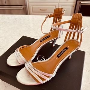 Dress Strappy Leather Sandal KAY UNGER Basque 7 Heels Silver Worn Once Box Bag