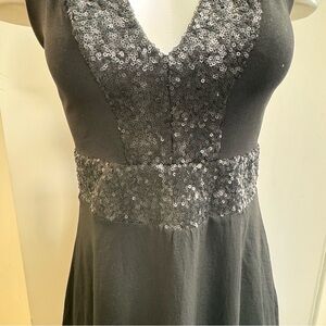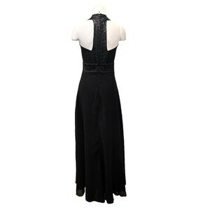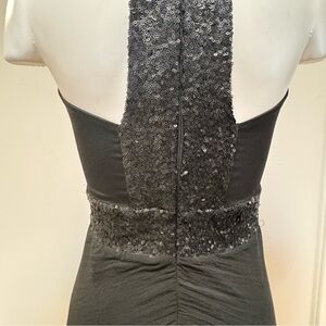 Lined, made in the USA. Sequin crepe maxi dress. Jet black in color. Fully lined.