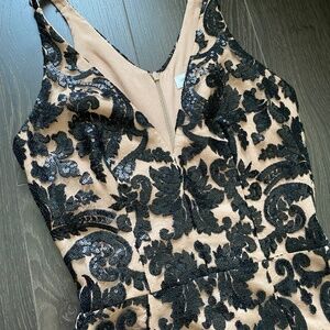 The most elegant evening dress! Stunning sequins throughout. Over nude underdress. Very very flattering shape form fitting throughout but also some stretch for movement. Fits like US2. Zipper entry on the back. No tags but like new condition.