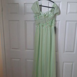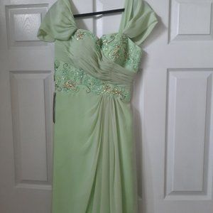 Light Green chiffon dress, fully lined. a Perfect B36 bra cup. hidden zipper, possibility to modify ( one size up or down). Brand new Izzy design. a cocktail dress which can be wear for cocktails or soirees. Perfect elegance and style.