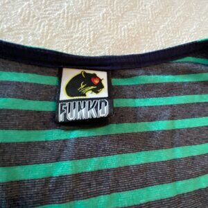 Green and navy dress by Funkd. Very lightly worn. Flattering with plenty of stretch - polyester with 8% spandex, ruched.