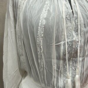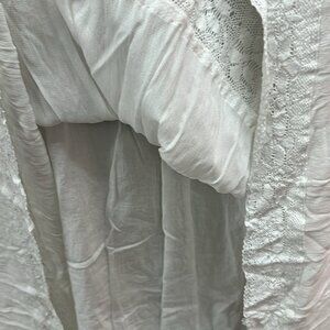 Miss June Paris. Size will fit from size 6 to size 14 us. White color. Never been worn. Fabric:100% rayon. Lining 100% viscose. Has elastic at the waist line and sleeves.