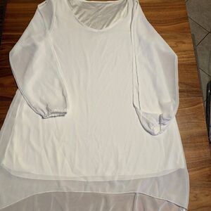 Feminine, floating, ethereal, self lined sheer knee length dress/ coverup. One size (see photos for measurements), unstructured for easy, off the body fit. Long sleeves are open from shoulder to wrist for sexy peek of skin. Can be worn as a dress, as a cover up at the beach, or as a top over leggings, long skirt or linen pants. Excellent used condition with no wear, stains or damage detected. Appears unworn. Channel your inner Greek goddess travelling, or think ahead to summer. Why not have fun adding a few finishing pieces from Our Closet (some suggestions shown, many more options available, all listed and priced separately)? All this for you, Fresh from Lemon Squeezy Shop🍋
